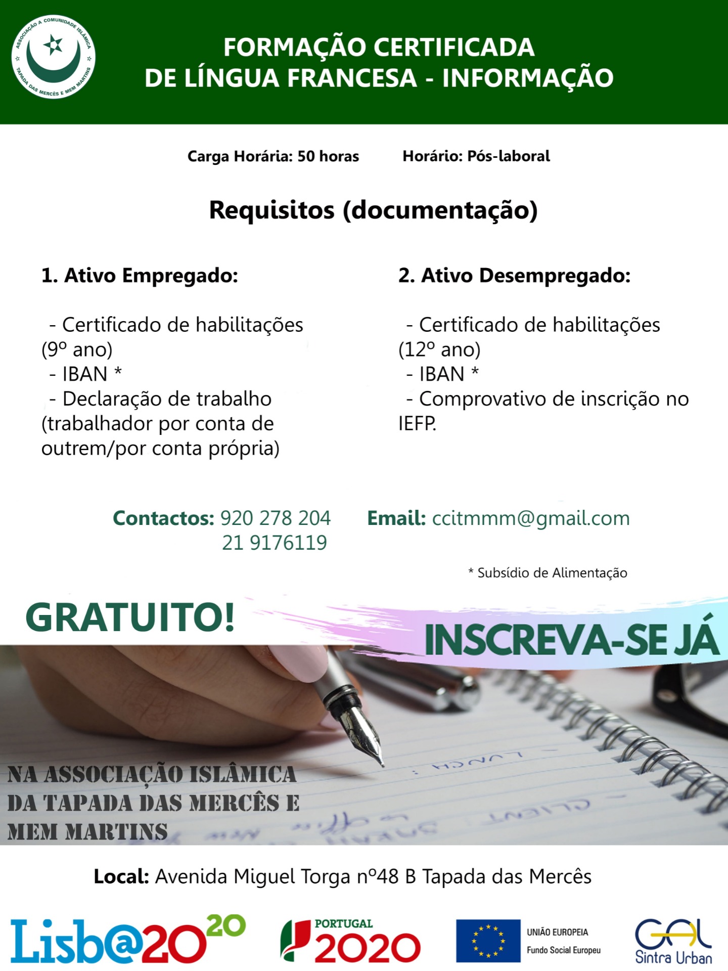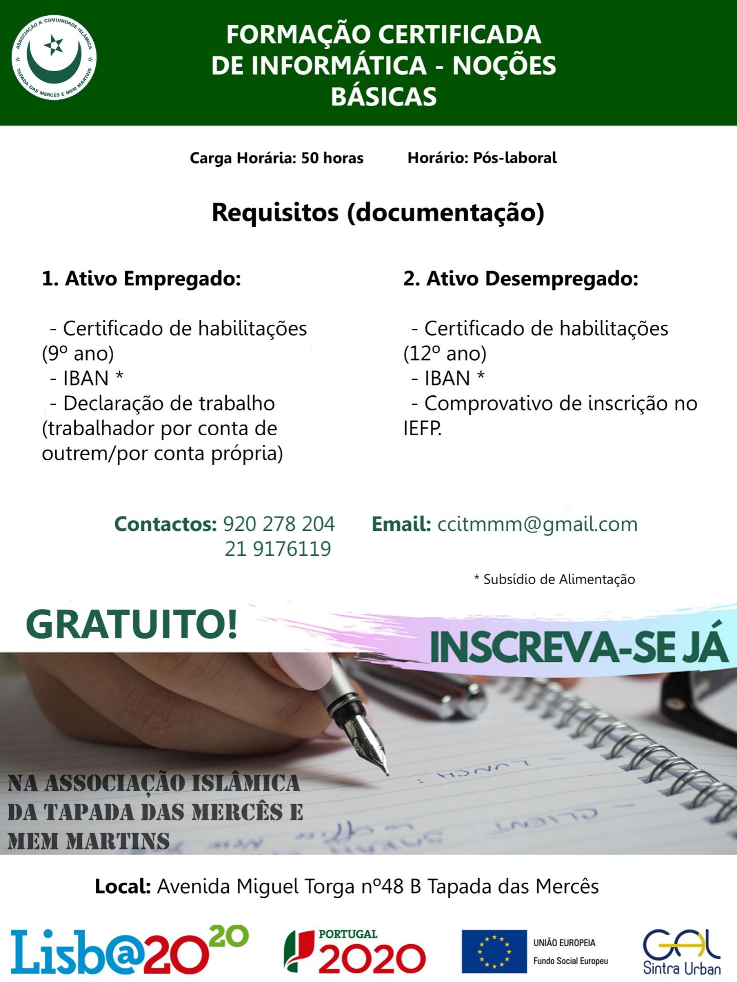 Free School Support at the Tapada das Mercês and Mem - Martins Islamic Association for children and/or teenagers attending the 5th, 7th and 9th grade.